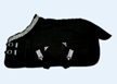 250gsm polar fleece outer. Double front closure buckles. Half cross-surcingles & tail loop at back. Fashion glitter on neck, front closure and surcingles.