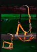 Made of long lasting quality nylon 1" wide with double- layer, nickel plated hardware, Double buckle crown, adjustable chin and snap. Fleece padded noseband and crown with matching lead rope glitter overlays on nose and crown.