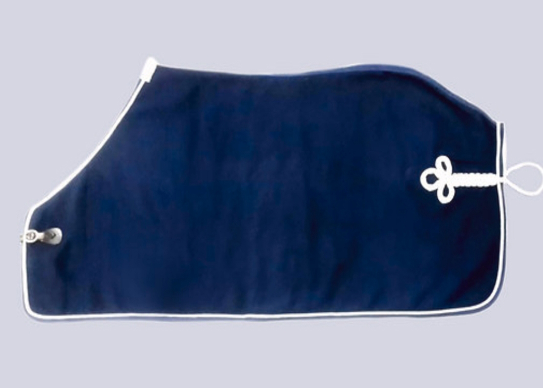 Heavy wool rug with a silver cord hip ornament flower with cord all along the binding, one leather front buckle and tail loop at back.